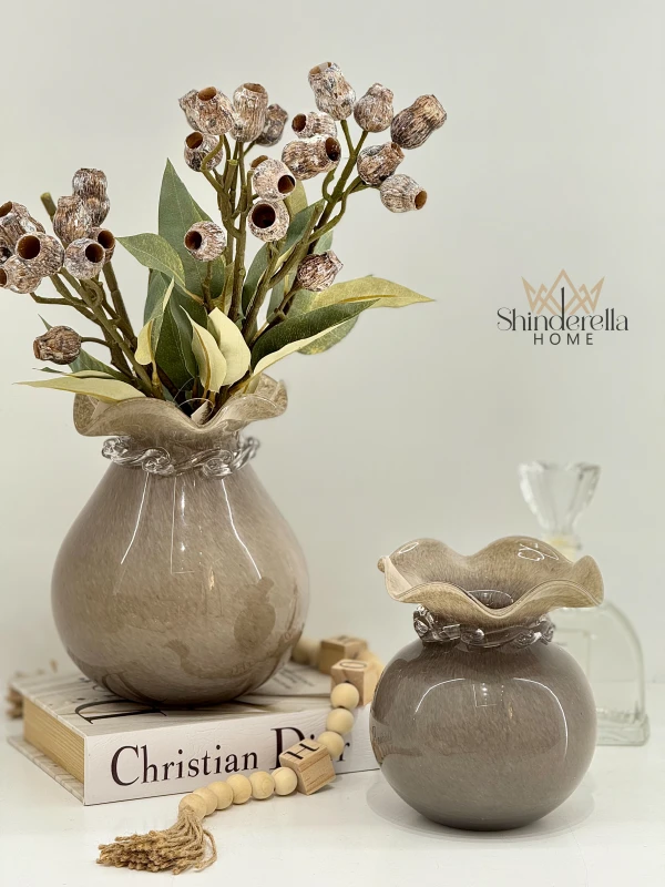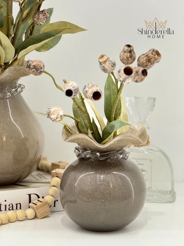 طقم مزهريات زجاج رمادي